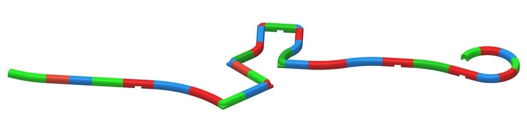- поворот большой, 44 см (301 г, R 31 cм) — в 3-х цветах, всего 6 элементов (по 2 каждого цвета),