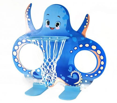В комплект входят стойка в виде осьминога, корзина и пять тканевых колец, которые можно бросать на щупальца осьминога. Используется для игр с мячом, которые помогут в развитии координации движений и ловкости.