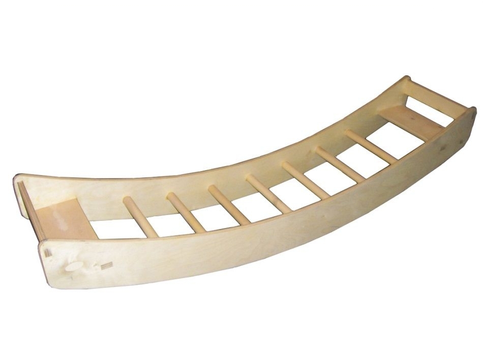 Изделие из многослойной фанеры покрывается бесцветным лаком. Гладкие рейки устанавливаются на расстоянии 300 мм. Диаметр каждой перекладины 37 мм.