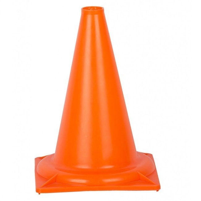 Конусами размечают площадь для соревнований на улице или в спортзале.