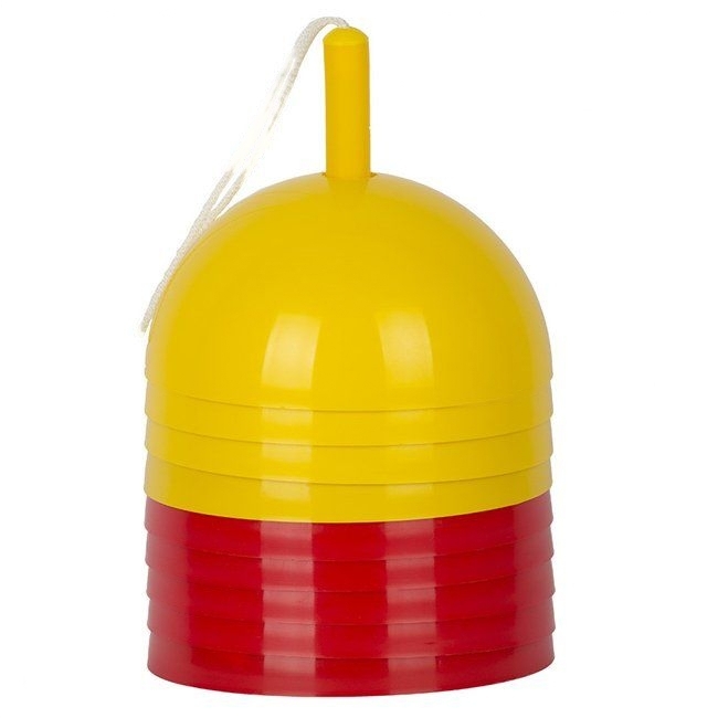 Фишками для разметки игрового поля обозначаются точки эстафет или разделяются дорожки команд. Элементы окрашены в яркие цвета, оснащены шнурками. После эксплуатации укладываются в штабель.