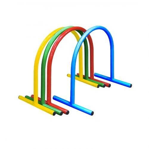 Арки для подлезания применяются во время детских эстафет, соревнований, занятий физкультурой. Дугообразные элементы из труб (22 мм) опираются на полозья с заглушками.