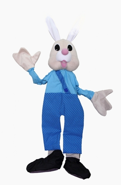 Мягкая кукла в виде зайца востребована для организации театральных спектаклей, праздников, логопедических занятий в ДОУ.