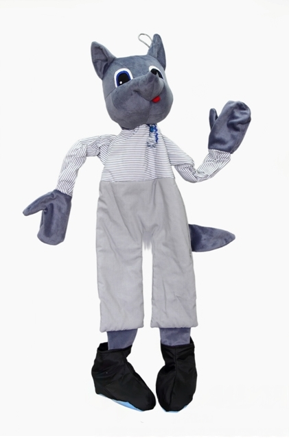 Ростовая игрушка в виде волка используется в детском саду. Мягкая кукла подходит для театрализованных сценок, логопедических занятий, праздников.