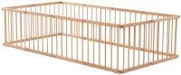 Конструкция без пола и крыши состоит из решетчатых стенок. Деревянные элементы покрыты бесцветным воском. Манеж быстро собирается и складывается. Детали гладкие, бортики закруглены.