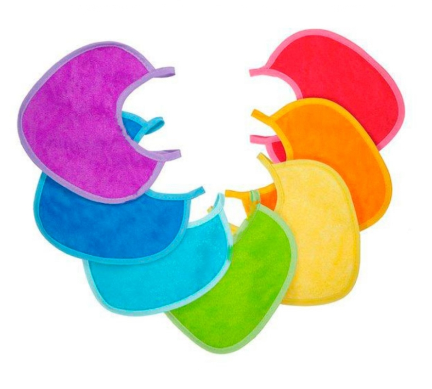 Разноцветные нагрудники с завязками применяются в зоне кормления. Материал отстирывается в машинке или на руках. Махра мягкая на ощупь. Подкладка из клеенки поможет не испачкать одежду.
