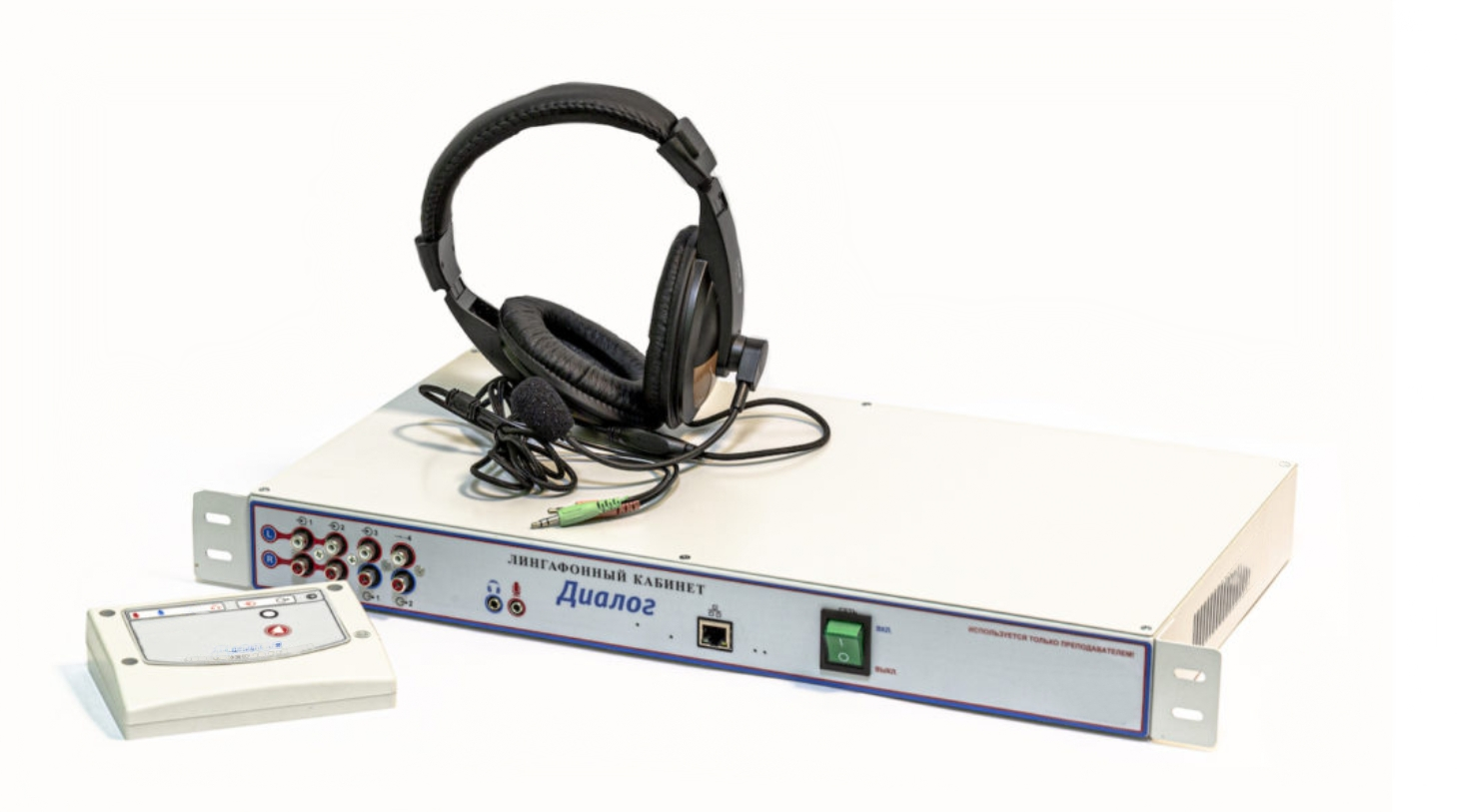 Гарнитура школьников через блоки подключается к специальному коммутатору, который передает звуки. Процесс управляется программой по локальной сети. Ход подготовки изложен в инструкции.