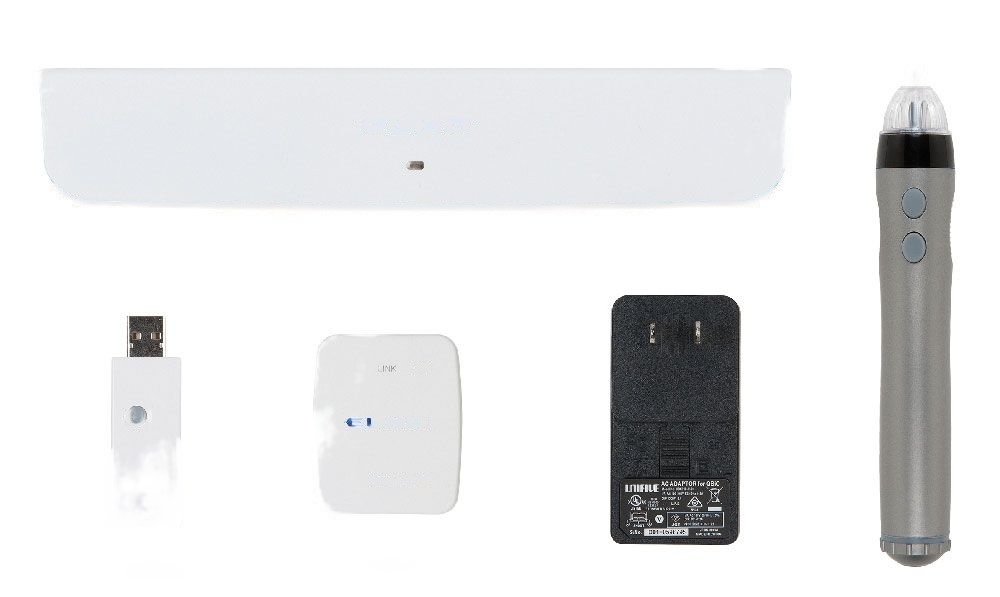Приставка соединяется в компьютером посредством WiFi, поэтому никаких дополнительных кабелей не потребуется. Крепится к рабочей поверхности (маркерной доске, стене, дисплею), на которую выводится изображение с ПК. Легко калибруется.