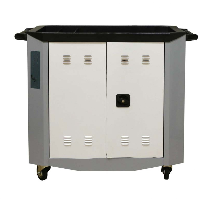Представляет собой металлический шкаф, оборудованный передвижными колесами. Внутри имеет 2 полки, которые разделены перфорированной перегородкой, образуя 4 отсека. В двух отделениях установлены металлические сетчатые перегородки, предназначенные для хранения ноутбуков. По желанию, эти перегородки можно снять, что позволит оптимально организовать внутреннее пространство. Максимальное количество хранимых ноутбуков — 16 штук (по 8 на каждой полке).