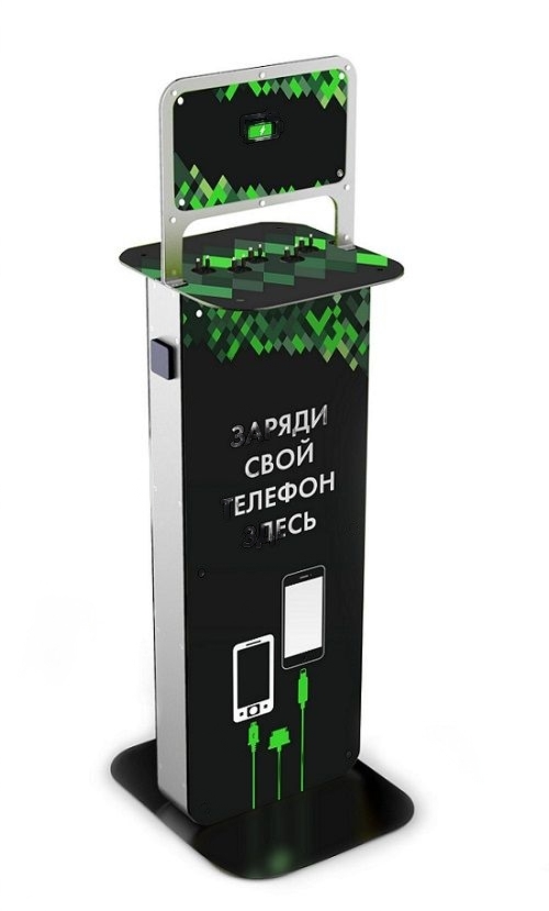 Напольная станция с 2-мя розетками (110-220 В) и кабелями USB заряжает электронные устройства в школах или других муниципальных учреждениях. Установка быстро справляется с задачей и экономит время на подготовку к занятию.