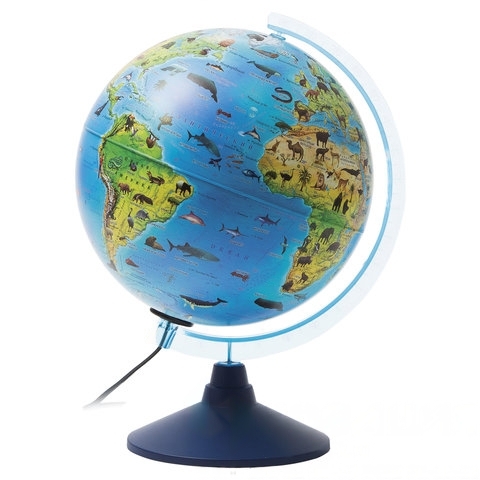 Глобус зоогеографический GLOBEN "Классик Евро", диаметр 250 мм, с подсветкой, детский, Ке012500270