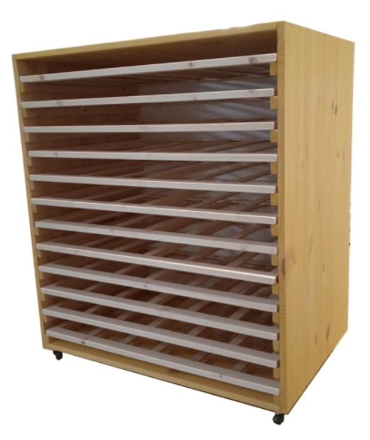 Стеллаж оборудован 10-ю рамками для хранения и сушки листов.