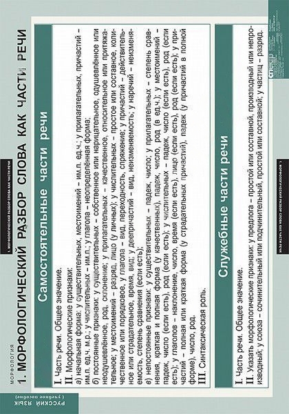 Комплект плакатов Русский язык. Морфология 5-11 кл.