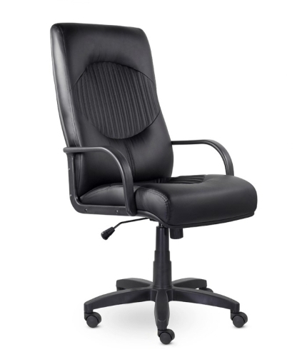 Кресло оснащено увеличенными подушками на спинке для поддержки спины и головы, разделяемыми декоративными вставками. Предусмотрен механизм для регулировки высоты.