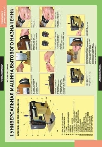 Комплект плакатов "Технология обработки ткани. Машиноведение" представлен на 6-ти листах.