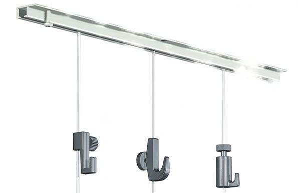 Рельс для подвесов используется при оформлении школ и детских садов. Потолочная установка держится на бетонных, гипсокартонных и деревянных поверхностях одинаково крепко.