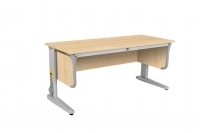 Ученический стол для роста 115-205 см оснащен 2-хместной наклонной столешницей (0-30°). Предусмотрено 9 ступеней регулировки высоты, полозья подстраиваются под неровности пола. Под рабочей поверхностью сплошной экран с боковинами. Закругленные углы ЛДСП прикрыты пластиковыми накладками.
