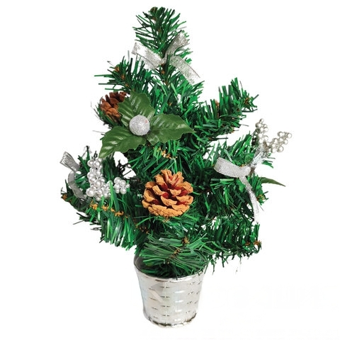 Ель искусственная новогодняя декоративная ЗОЛОТАЯ СКАЗКА 30 см, ПВХ, серебристые украшения/шишки, 591319