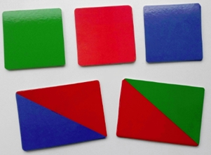 - квадратные карточки – 18 шт (красные, синие, зеленые),