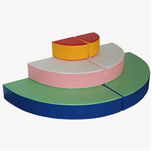 Набор используется во время спортивных занятий и отдыха. Пары цветных блоков составляются в 3 полукруглых подиума. Их можно расположить отдельно друг от друга или выстроить пирамиду. Элементы служат мебелью и конструктором.