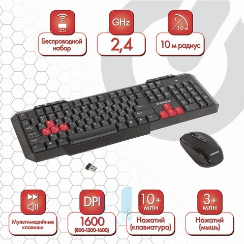 Набор беспроводной SONNEN WKM-1811, клавиатура 112 клавиш мультимедиа, мышь 4 кнопки, черный, 512655