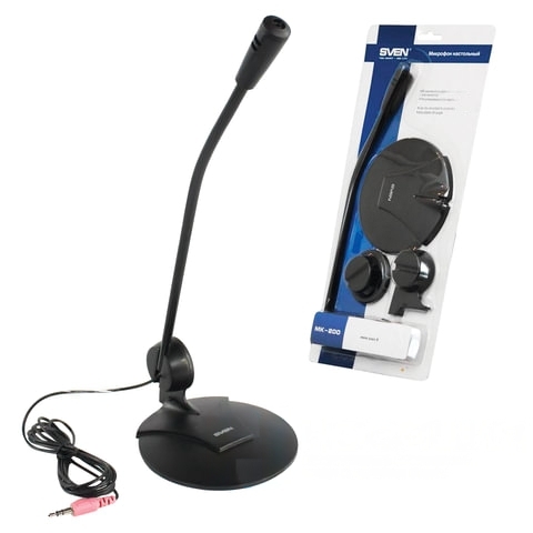 Микрофон настольный SVEN MK-200, кабель 1,8 м, 60 дБ, черный, SV-0430200