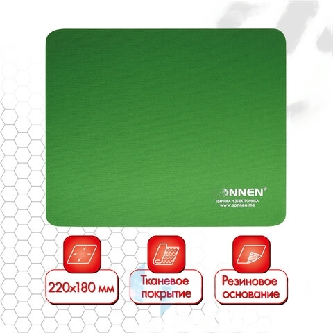 Коврик для мыши SONNEN "GREEN", резина + ткань, 220х180х3 мм, 513305