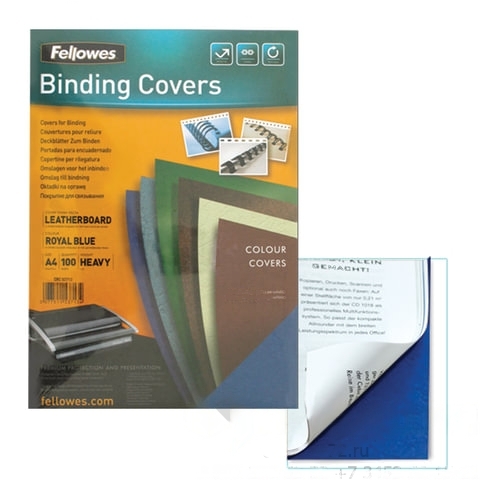 Обложки картонные для переплета А4, КОМПЛЕКТ 100 шт., тиснение под кожу, 250 г/м2, синие, FELLOWES, FS-53713