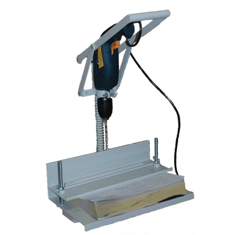 Станок для сверления бумаг УПД Д имеет высокую производительность, неприхотливость, надежность простоту и легкостью в обращении. В процессе работы кнопка включения дрели фиксируется стандартным способом боковой кнопкой дрели (также имеется возможность регулировки оборотов вращения патрона).