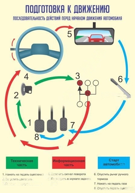 На данном стенде схематично в доступной форме показаны все действия, которые должен совершить водитель перед началом автомобильного движения.