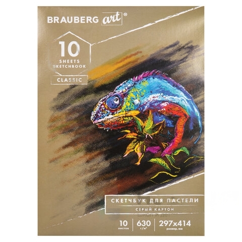 Альбом для пастели, картон СЕРЫЙ некрашенный 630 г/м2, 297x414 мм, 10 л., BRAUBERG ART CLASSIC, 105917