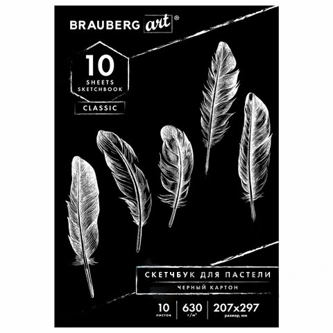 Альбом для пастели, картон ЧЕРНЫЙ тонированный 630 г/м2, 207x297 мм, 10 л., BRAUBERG ART CLASSIC, 105918