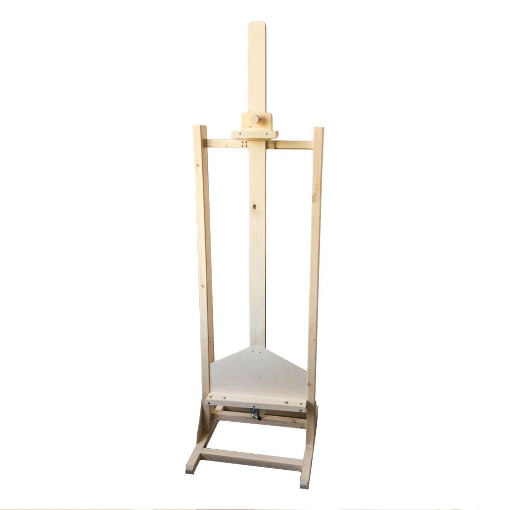 Напольная конструкция оснащена устойчивыми опорами-полозьями, рамой, площадкой для картин, мачтой. Высота регулируется сдвиганием бегунка вдоль мачты.