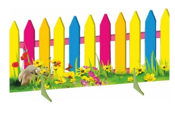 Панель из МДФ украшает изображение растений и забора из разноцветных досок. Универсальное изделие стоит на 2-х подставках.