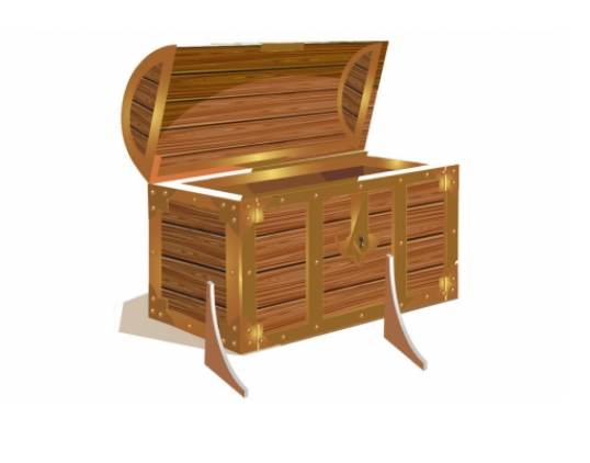 Элемент оформления для сцены и холла в ДОУ представлен резной панелью. Имитация сундука с открытой крышкой изготавливается из МДФ, закрепляется на подставках. Изображение наносится с обеих сторон.