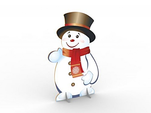 Панель из МДФ в виде снеговика закрепляется на подставках. Долговечная поверхность изделия устойчива к физическим воздействиям.