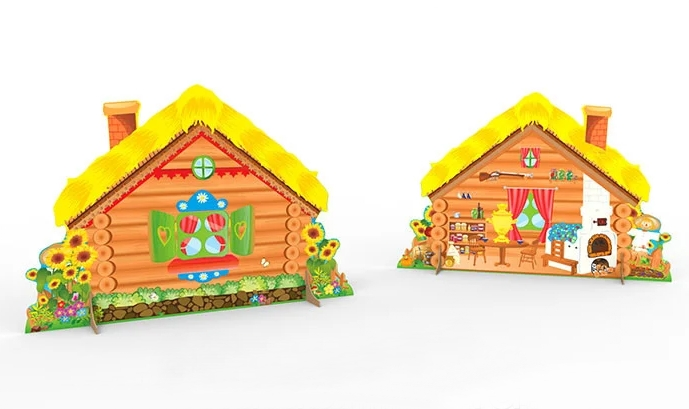 Театральная декорация в виде красочной избы подходит для ДОУ.
