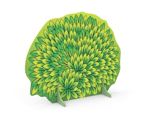Декорация для утренников и театрализованных представлений размещается в ДОУ. Резная панель с цветным изображением куста стоит на двух подставках.