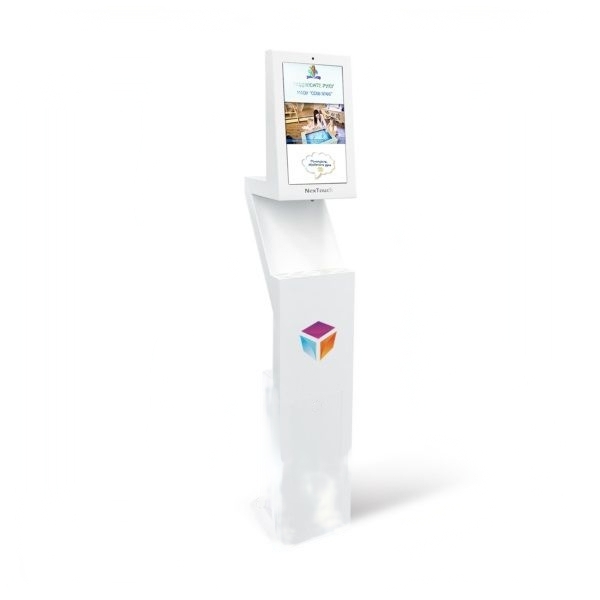 Напольный диспенсер устанавливается на входе в помещение. Служит для бесконтактной дезинфекции рук, измерения температуры тела. Актуально в период распространения вирусов. Техника адаптирована к потребностям людей с нарушениями зрения и слуха, маломобильных посетителей.