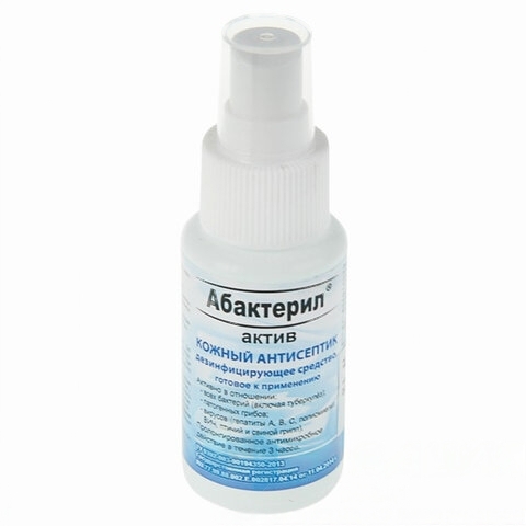 Антисептик для рук и поверхностей спиртосодержащий (64%) с распылителем 50мл АБАКТЕРИЛ-АКТИВ, дезинфицирующий, жидкость, АА-210