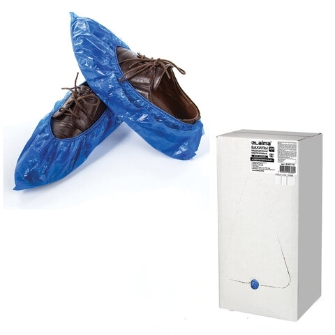Бахилы КОМПЛЕКТ 600 шт. (300 пар), СВЕРХПРОЧНЫЕ, двойная резинка, 40х14 см, 100 мкм, 10 г, LAIMA, 630719