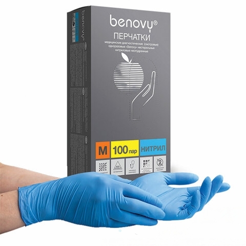 Перчатки нитриловые смотровые КОМПЛЕКТ 100 пар (200 шт.), размер M (средний), BENOVY Nitrile Chlorinated