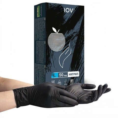 Перчатки нитриловые смотровые КОМПЛЕКТ 50 пар (100 шт.), размер L (большой), черные, BENOVY Nitrile MultiColor