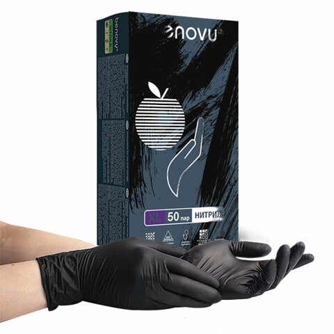 Перчатки нитриловые смотровые КОМПЛЕКТ 50 пар (100 шт.), размер XL (очень большой), черные, BENOVY Nitrile MultiColor