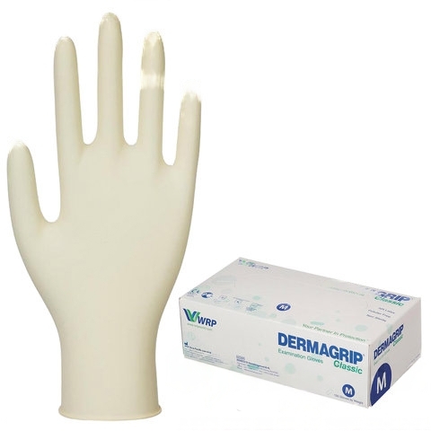 Перчатки латексные смотровые, КОМПЛЕКТ 50 пар (100 шт.), неопудренные, хлоринация, M, DERMAGRIP "Classic", D1502-10