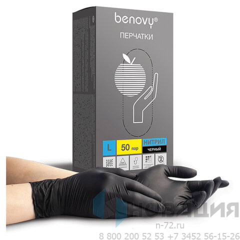 Перчатки нитриловые смотровые КОМПЛЕКТ 50 пар (100 шт.), размер L (большой), черные, BENOVY Nitrile Chlorinated