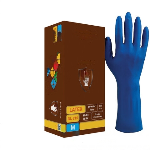 Перчатки латексные смотровые КОМПЛЕКТ 25 пар (50 шт.), M (средний), синие, SAFE&CARE High Risk, DL 215