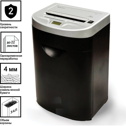 Уничтожитель (шредер) BRAUBERG S22-S, 2 уровень секретности, полоски 4 мм, 22 листа, 34 л, CD, 531773