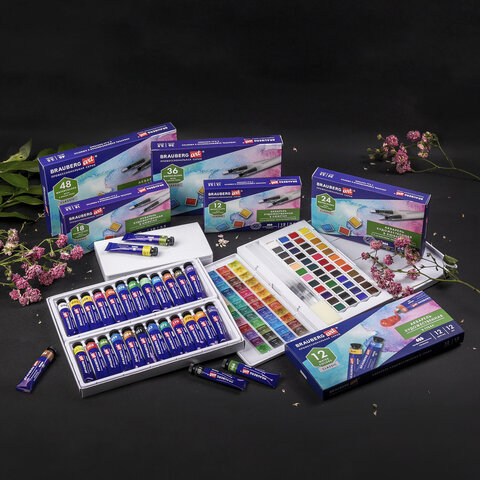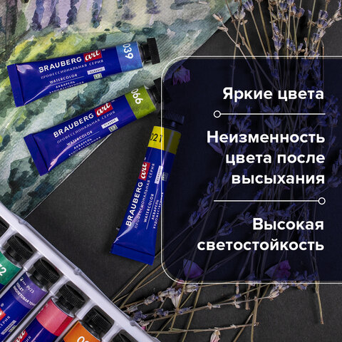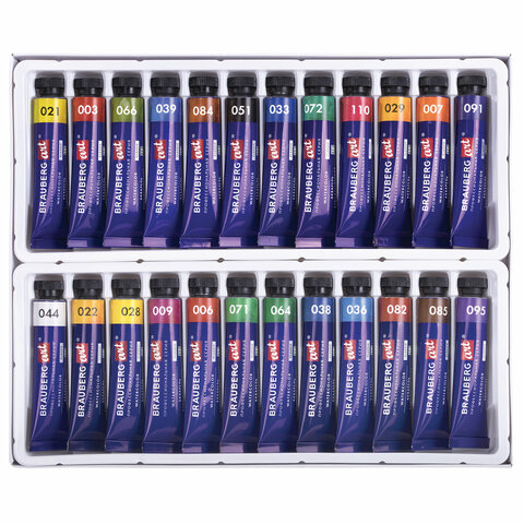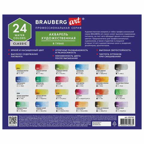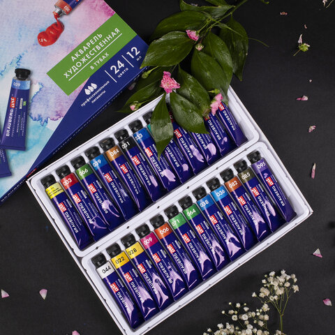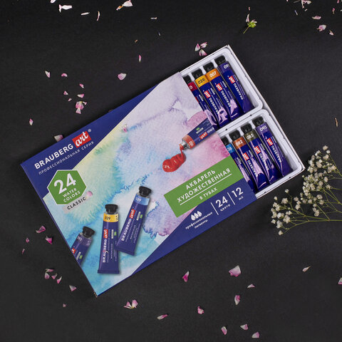 Акварель художественная в тубах НАБОР 24 цвета по 12 мл, BRAUBERG ART CLASSIC, 191765