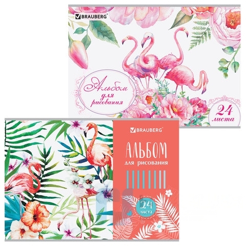 Альбом для рисования А4 24 листа, скоба, выборочный лак, BRAUBERG, 202х285 мм, "Фламинго" (2 вида), 105059